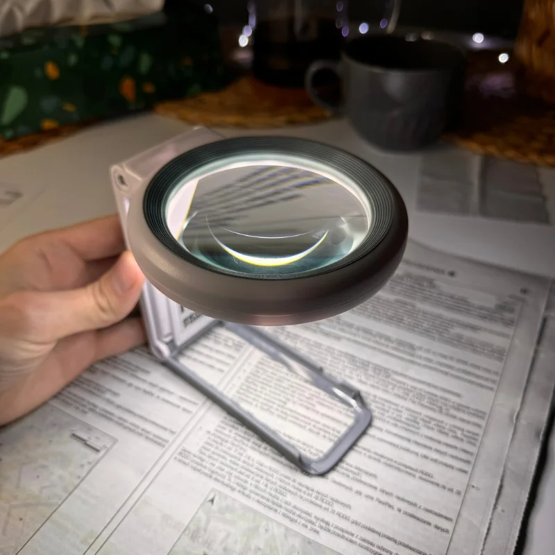 Używam jej głównie do budowania z klocków Lego. Uwielbiam podświetlaną lupę ze stojakiem. Można ją też złożyć i używać jako ręcznej. Podoba mi się wybór trzech trybów oświetlenia. Mniejsza soczewka nie sprawdziła się u mnie najlepiej – rozdzielczość nie była wystarczająca, ale to nie wpływa na moją ocenę, bo nie po to ją kupiłem. Do oglądania małych elementów i instrukcji jest idealna dla moich starzejących się oczu. Jestem w 100% zadowolony.