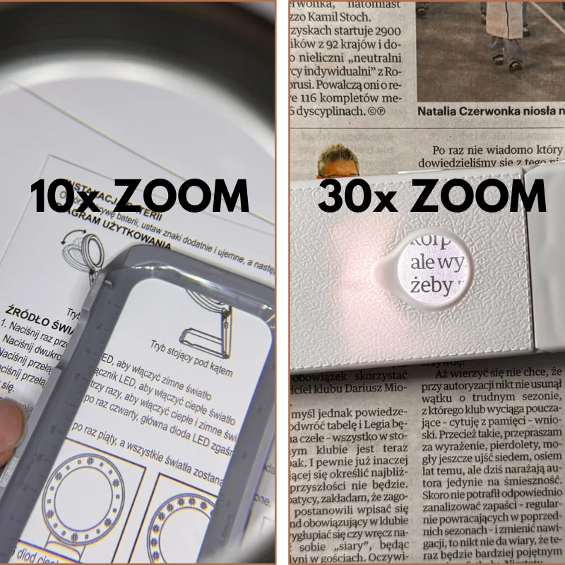 ⭐Powiększenie: 10x (duża soczewka) / 30x (mała soczewka)